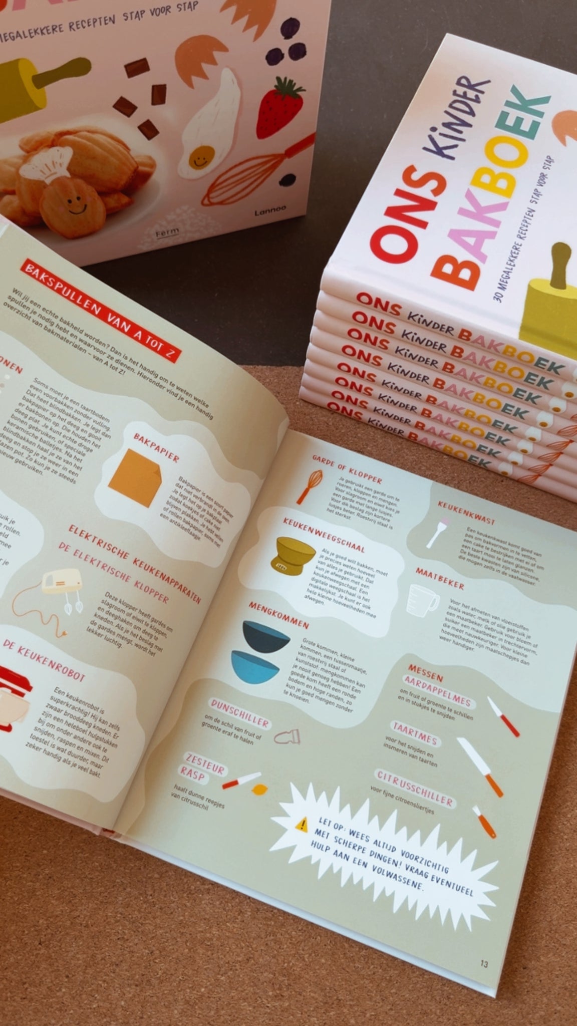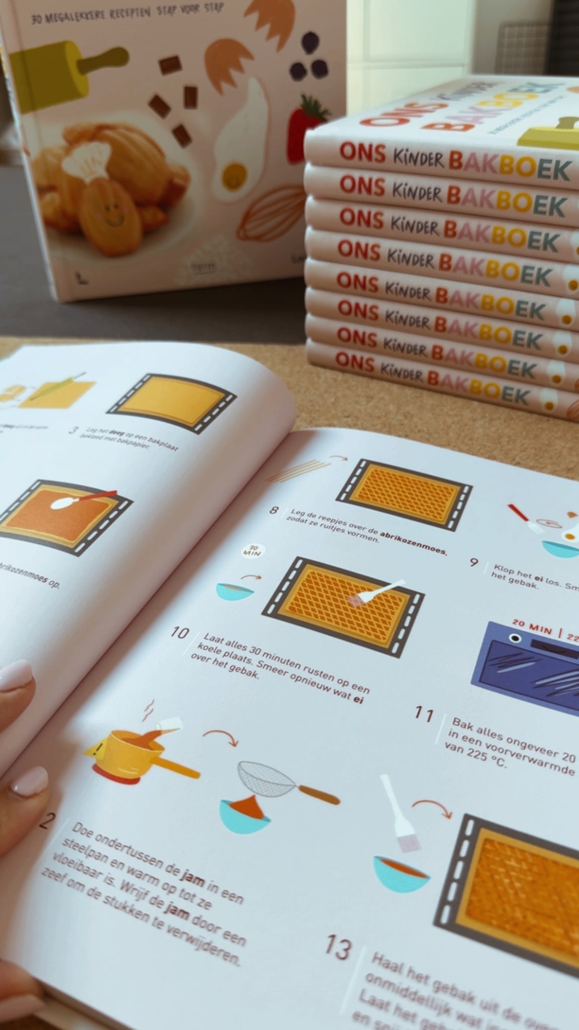Klaar om samen te bakken? In dit superleuke kinderbakboek vind je 35 vrolijke recepten uit Ons Bakboek die speciaal zijn aangepast voor kleine keukenhelden. Van cupcakes en koekjes tot hartige snacks, stap voor stap uitgelegd en kleurrijk geïllustreerd met de uitbundige illustraties van Evelien Jacobs (@Evelontwerpt)